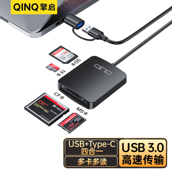 擎启USB-C3.0读卡器多合一带Type-C支持SD TF CF MS 记忆棒型相机手机内存卡OTG款多卡多读