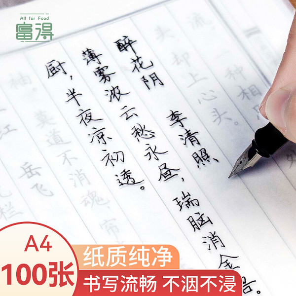富得 临摹纸 拷贝纸透明纸 描图练字专用硬笔书法练习纸钢笔字帖描红薄纸 练字纸 (21.0cm*29.7cm)A4-100张