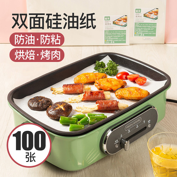富得 长方形硅油纸 烤箱烘焙纸 家用烤盘吸油纸锡纸空气炸锅专用纸 防粘双面可用 40cm*30cm-100张
