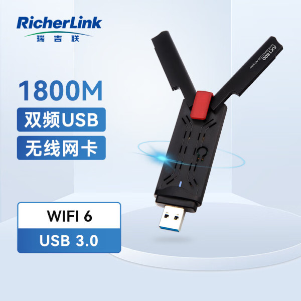 RicherLink 瑞吉联 AX1800 WIFI6双频USB无线网卡电竞游戏高速5G台式机笔记本电脑WiFi接收发射器
