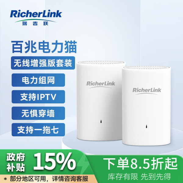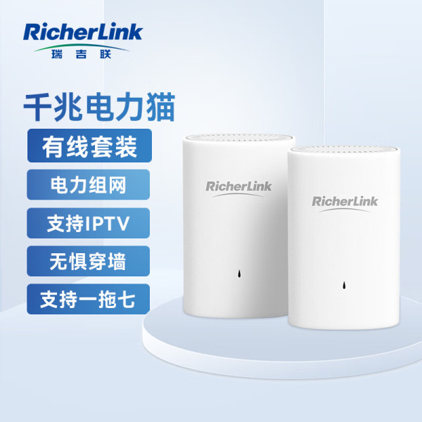 RicherLink 瑞吉联 RL65014GL千兆迷你有线扩展PLC电力猫增强版家用路由器穿墙套装