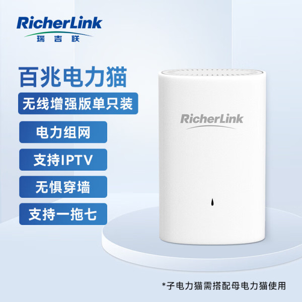 RicherLink 瑞吉联RL65010ML百兆迷你有线扩展PLC电力猫增强版单只装家用路由器穿墙套装免布线支持IPTV