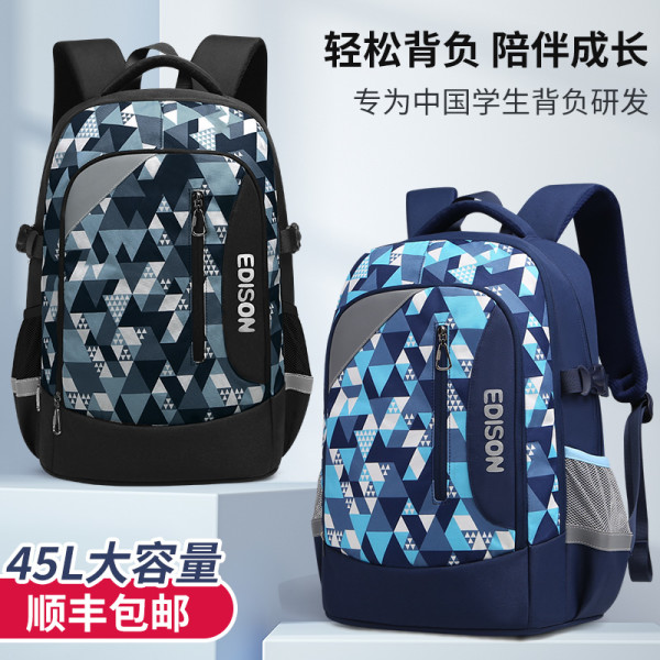 爱迪生书包男初中生大容量双肩包高中生减负护脊防水背包