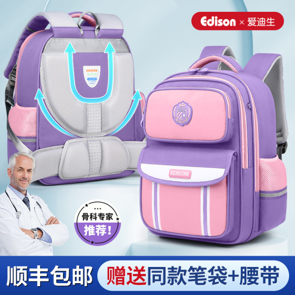 爱迪生小学生一到五六年级书包女童轻便防水儿童减负护脊女孩背包