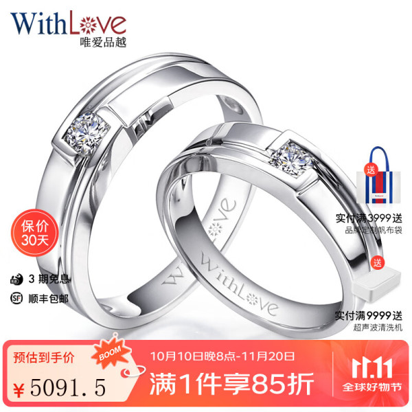 WithLove 唯爱品越 白18K金钻石对戒 铂金结婚戒指 恋爱景色 白18K金/15分/