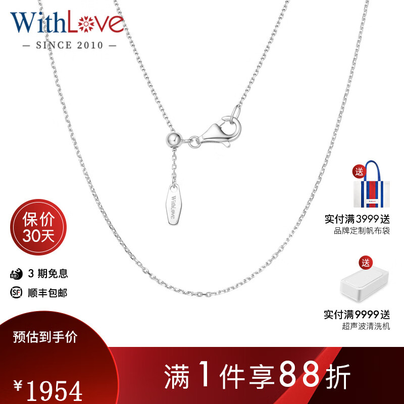 WithLove日本工艺18K玫瑰金可调节O字链十字链素金链 百搭基础时尚锁骨链 【极细0.85mm】Pt950铂金