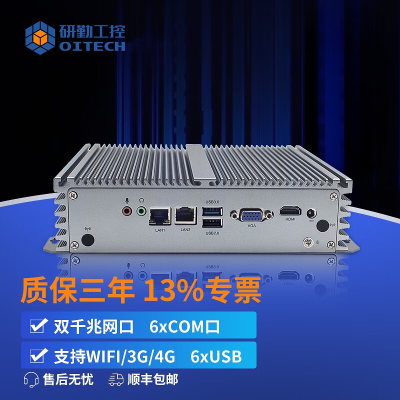 研勤工控机酷睿i5双网10串口无风扇工控机支持linux系统工控主机 J1900/6串口 4G内存/64G固态硬盘