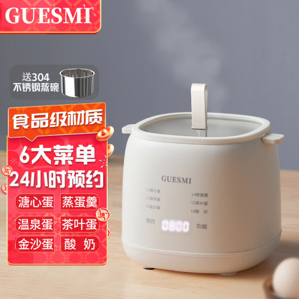 GUESMI 皆米 煮蛋器蒸蛋器全自动断电家用迷你小型煮蛋蛋羹便携智能预约定时6种模式温泉蛋溏心蛋