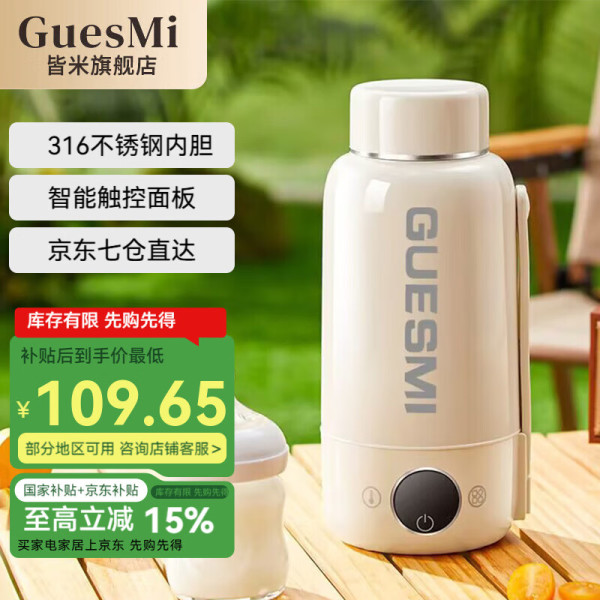 皆米(GUESMI)便携式烧水壶出差旅行电热水杯加热恒温杯1L保温婴儿冲奶迷你小型一体家用小功率宿舍烧水神器 1L 白色【316不锈钢】