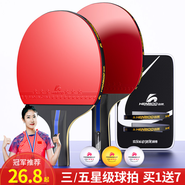 恒博 乒乓球拍三星五星初学者兵乓球直拍横拍儿童小学生专业级双拍