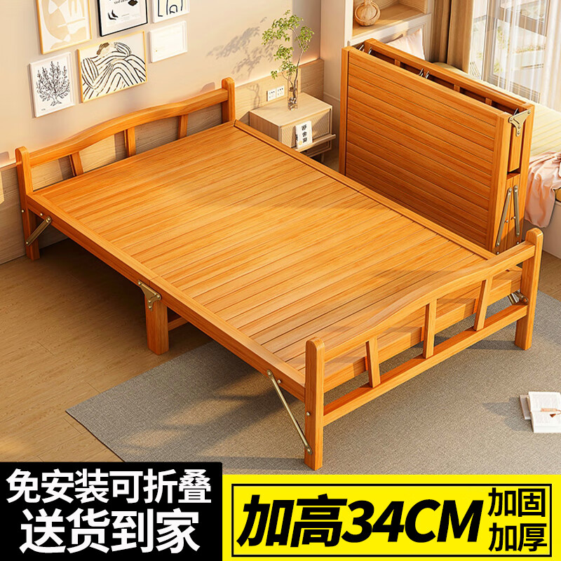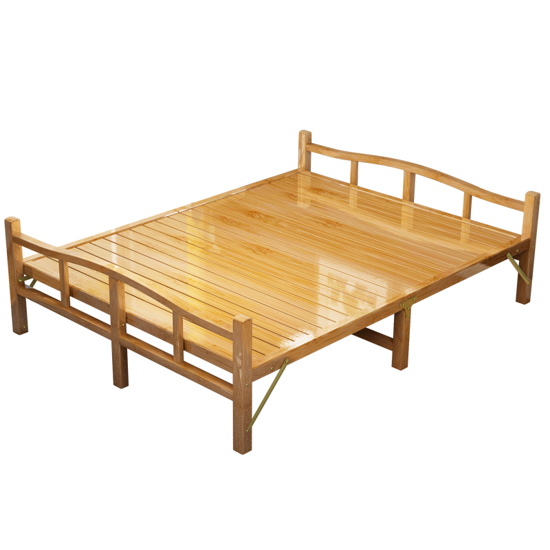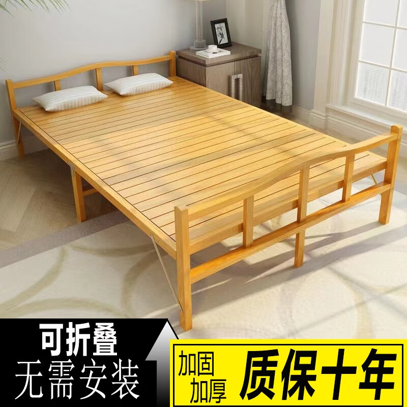 恒博 折叠床单人床家用简易床竹床午休床折叠午睡床出租屋凉床实木床 加厚宽板150*198*34cm 床垫 枕头