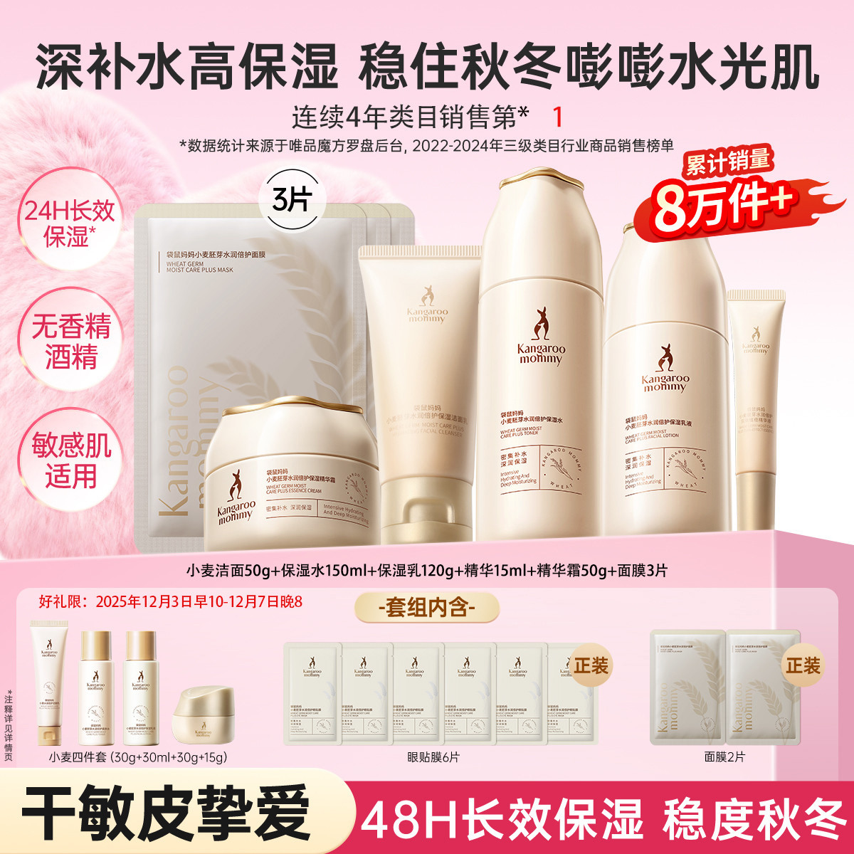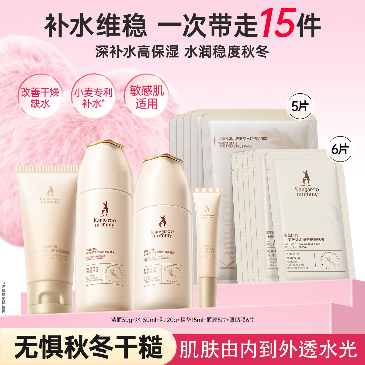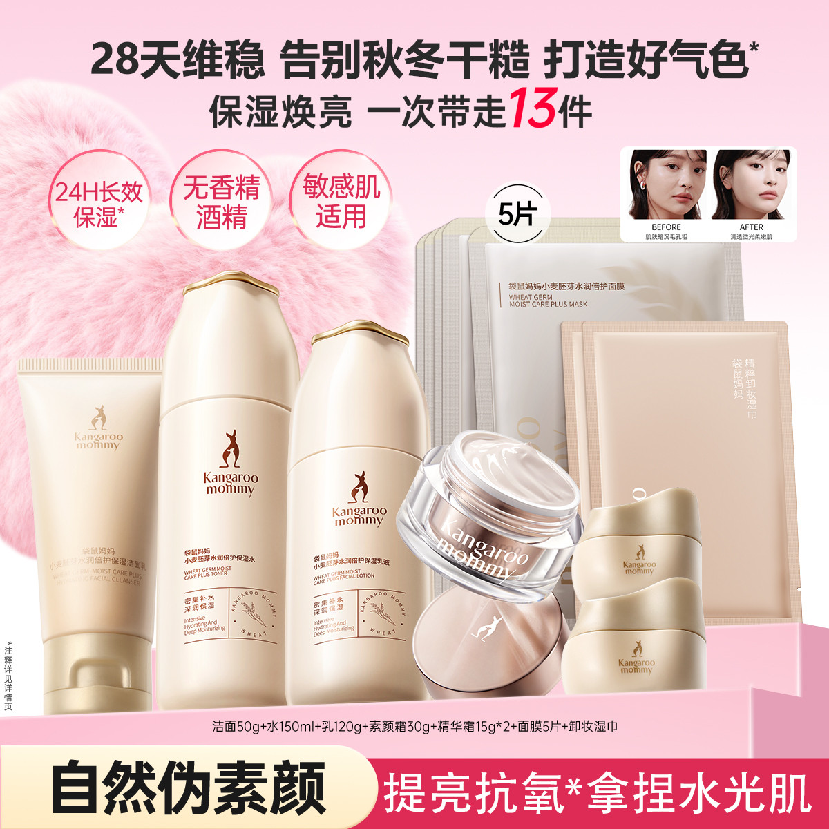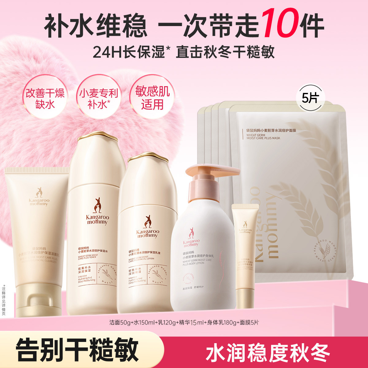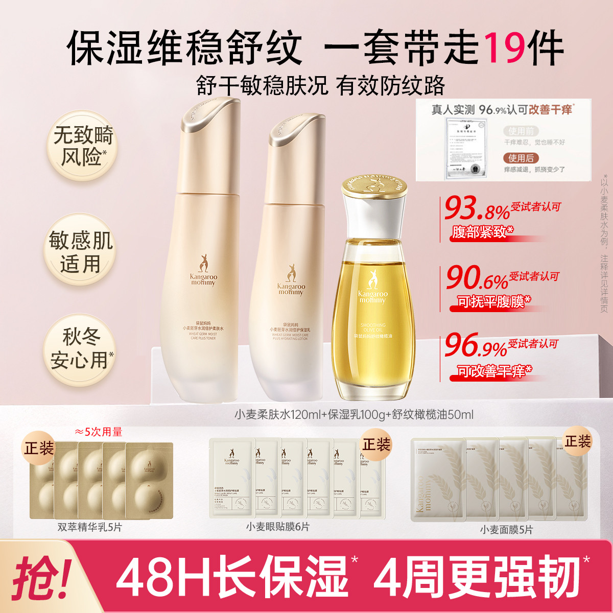 袋鼠妈妈 【镇店爆款】小麦准孕妇可用护肤品套装面霜保湿水乳素颜霜橄榄油