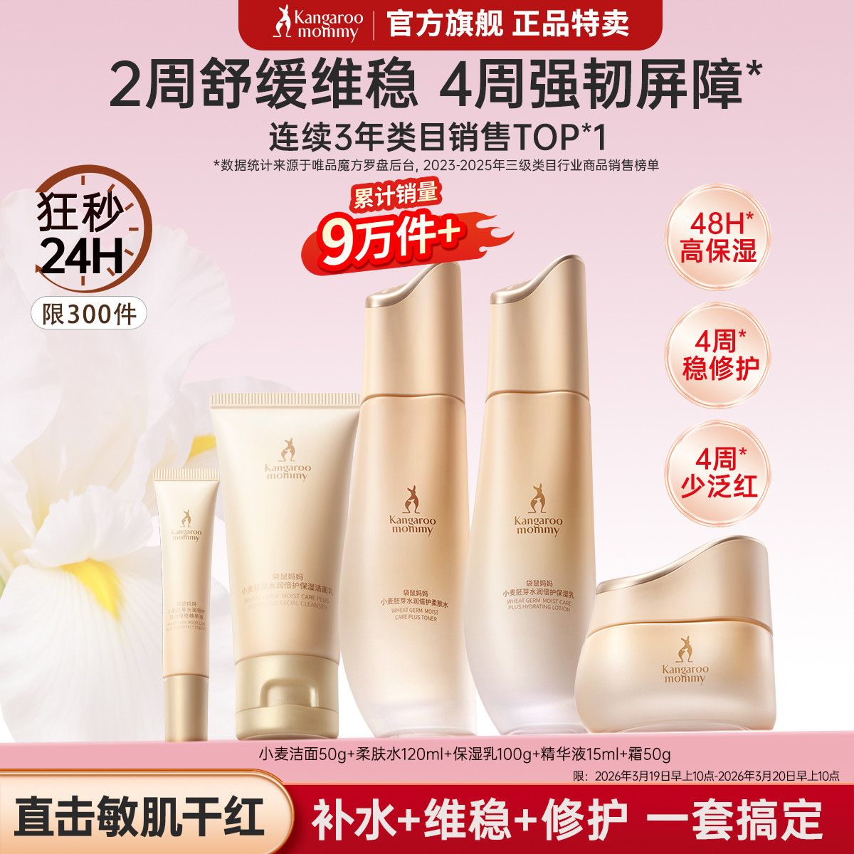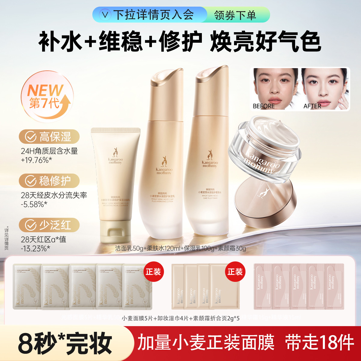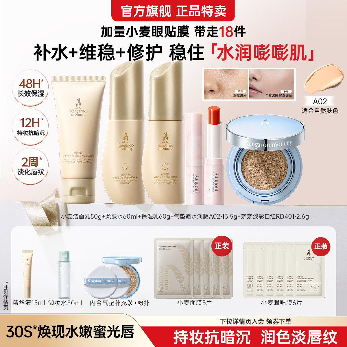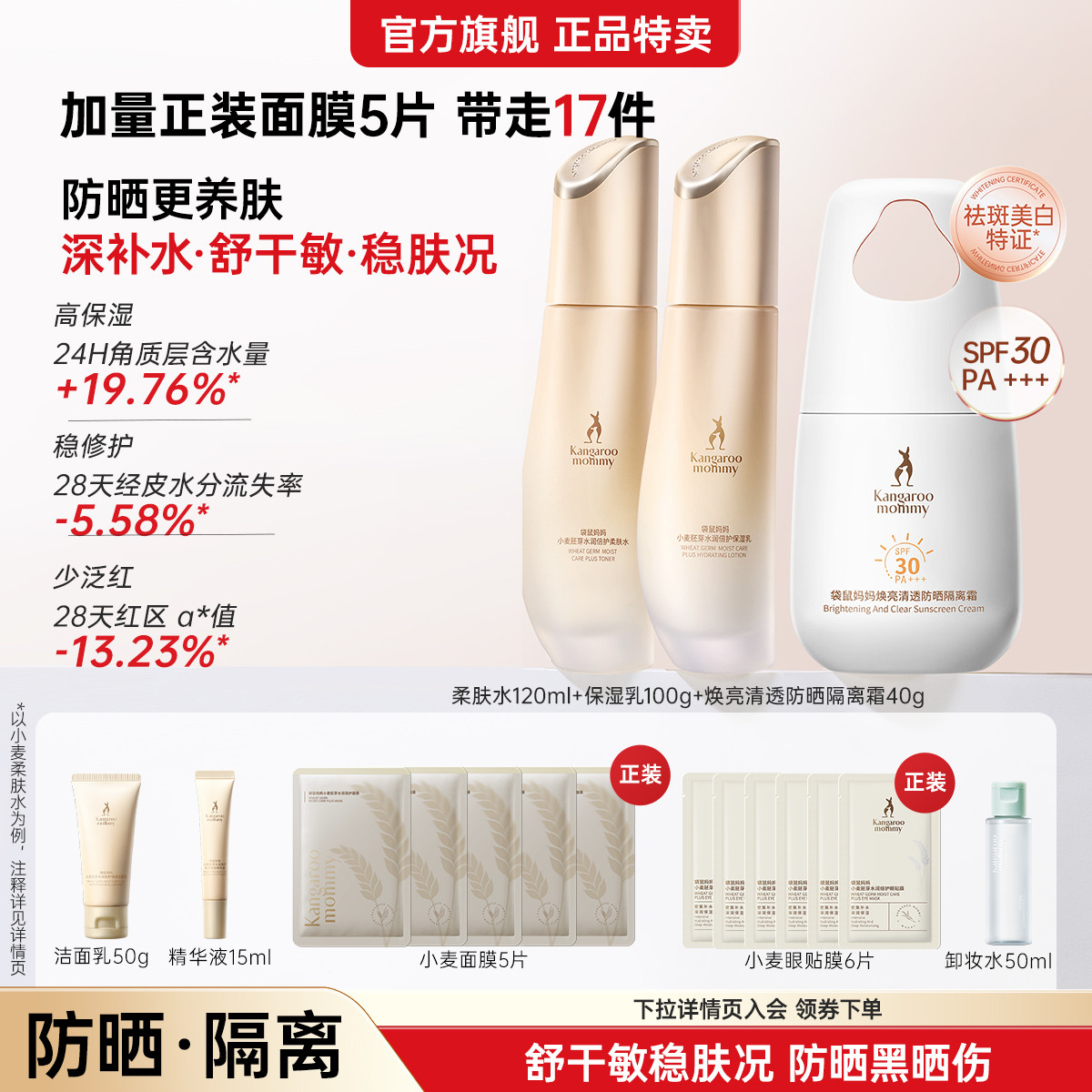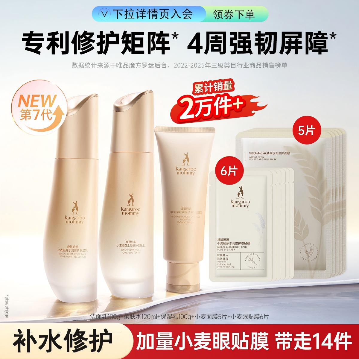 袋鼠妈妈 【镇店爆款】小麦水乳套装护肤品套装保湿防晒霜素颜霜提亮肤色