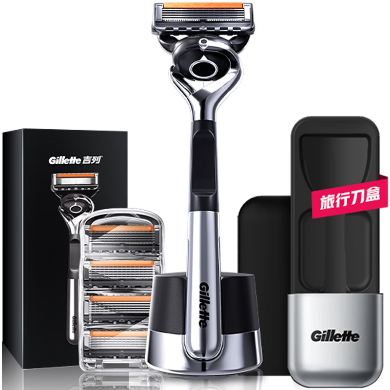 吉列锋隐5致顺 剃刮胡须刀手动差旅便携款 1刀架5刀头 旅行盒 5层刀片男士 京东自营旗舰 非吉利