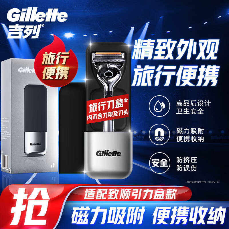 吉列适配致顺致护出差旅行 剃刮胡须刀手动差旅便携款 旅行盒银色版 男士 京东自营旗舰非吉利