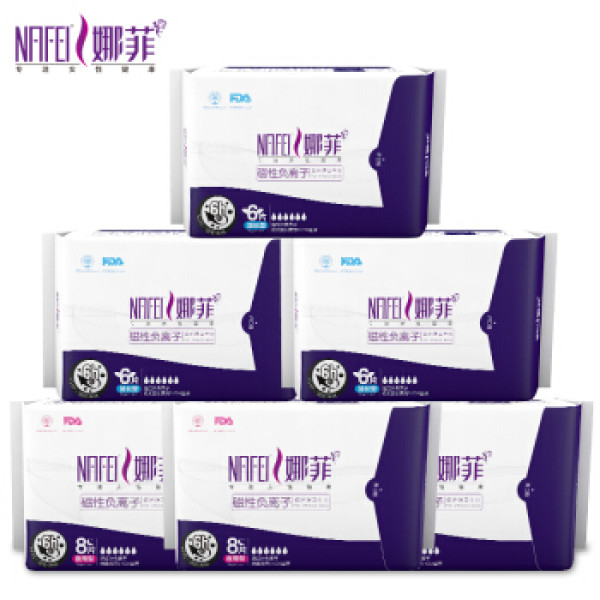 娜菲 卫生巾 远红外负离子棉面夜用两款组合 6包42片(夜用8片*3+加长6片*3)防漏透气 轻薄吸收