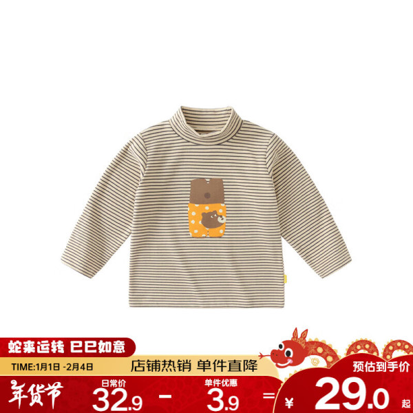 DOODOO 嘟嘟 家儿童T恤秋季宝宝长袖上衣春秋保暖打底衫男童休闲秋装女童内穿衣 米咖条