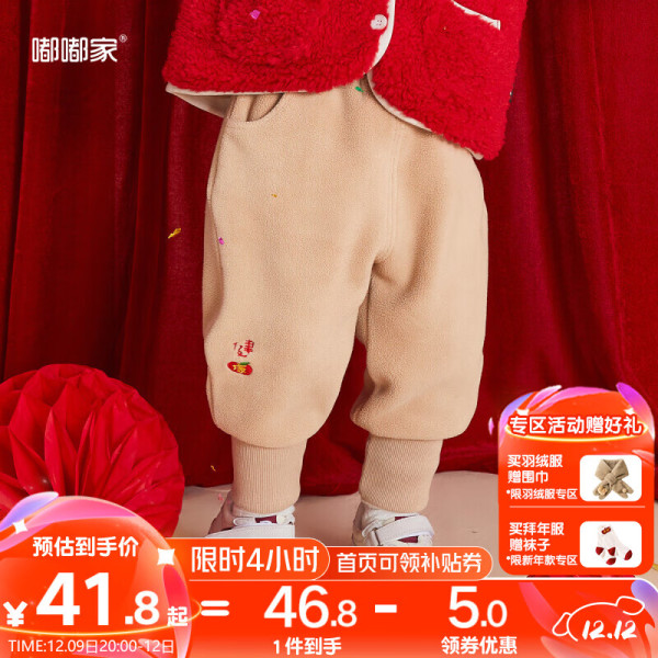 DOODOO 嘟嘟 家宝宝拜年服裤子儿童加厚衣服小童周岁礼服洋气保暖裤 卡其色 110