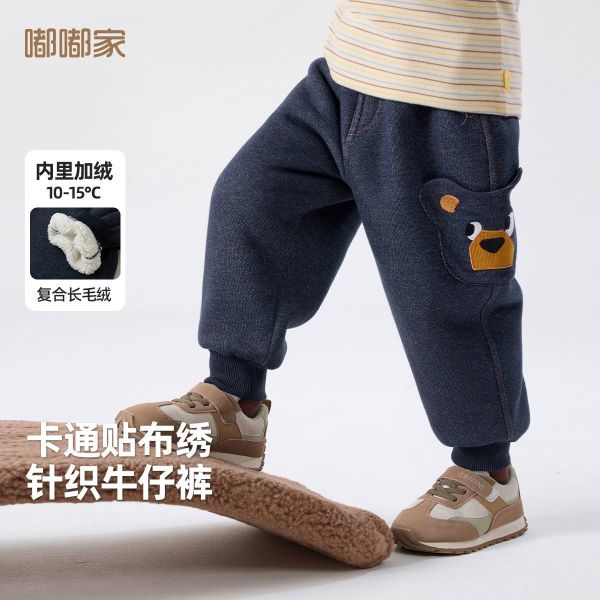 嘟嘟 DOODOO 家宝宝裤子秋冬加绒男童牛仔裤新款儿童休闲长裤小男孩童装潮