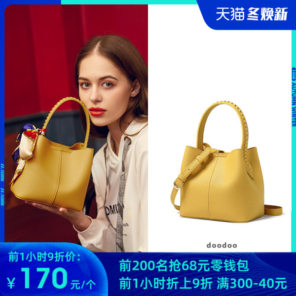 doodoo包包女包新款2020潮时尚秋冬简约斜挎包单肩手提丝巾水桶包