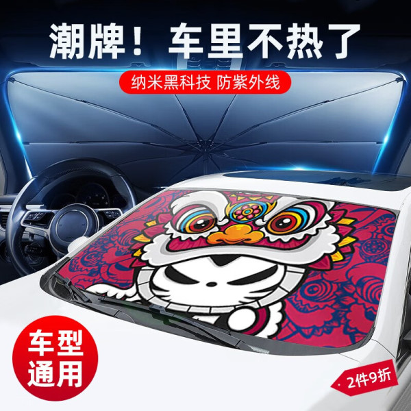 拽猫(ZhuaiMao)汽车遮阳伞防晒隔热遮阳挡车内前挡风玻璃遮阳帘神器车载太阳挡布 醒狮 夏季夏天车用太阳伞