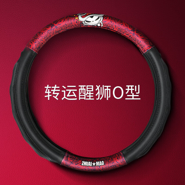 拽猫国潮汽车方向盘套真皮保护套龙年个性车把套子防滑保护套四季通用 醒狮款(单个)O型真皮