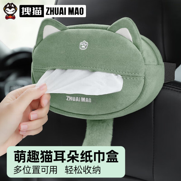 移动端、京东百亿补贴:拽猫 车载纸巾盒 绿色款(单个装) 1个装