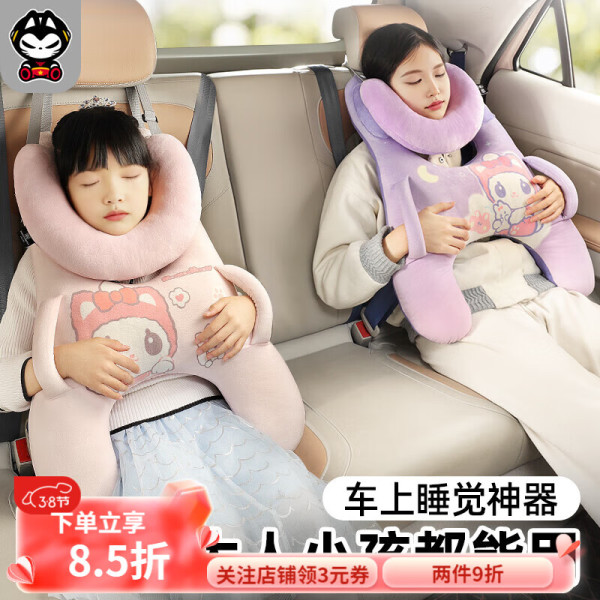 移动端、京东百亿补贴:拽猫 汽车头枕车上睡觉后排成人抱枕车载靠枕护颈枕车内座椅抱睡枕 萌萌喵套装
