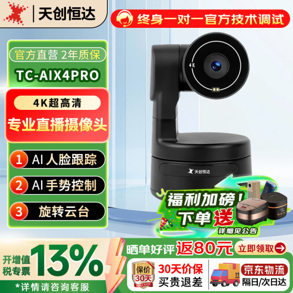 天创恒达 TCHD Video 4K超清直播摄像头竖屏直播高清摄像机美颜主播高清直播带货相机TC-AI X4 Pro 黑