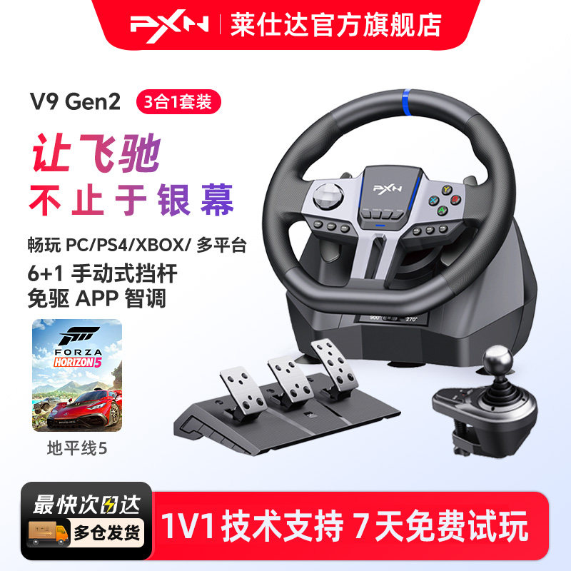 PXN莱仕达V9 Gen2赛车游戏方向盘900度汽车模拟器pc PS4 switch电脑模拟驾驶欧洲卡车地平线5欧卡2方向盘