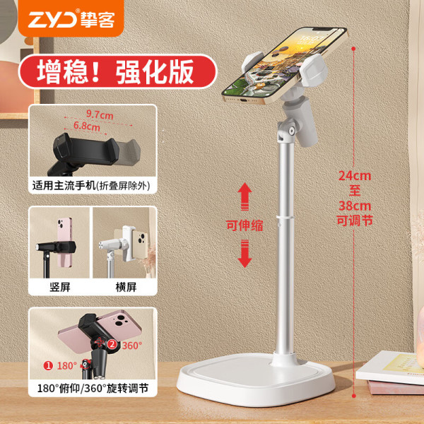 挚客手机支架桌面直播金属拍摄架子懒人万能通用俯拍抖音支撑架可调节升降网课家用铝合金手机架 月光白【大底盘+配重】高度角度可调节
