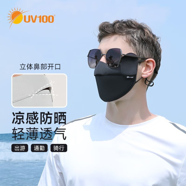 UV100 防晒面罩春夏季男女防紫外线透气护颈遮全脸凉感口罩23502暗夜黑 护颈帽檐款-暗夜黑