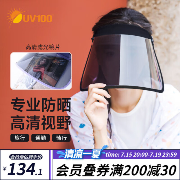 UV100防晒帽女春夏防紫外线遮脸户外骑行出游遮阳帽防风护目镜22429