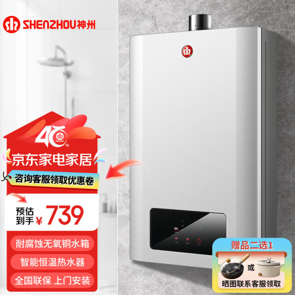 神州 燃气热水器家用智能恒温节能变频洗澡天然气液化气煤气12升13