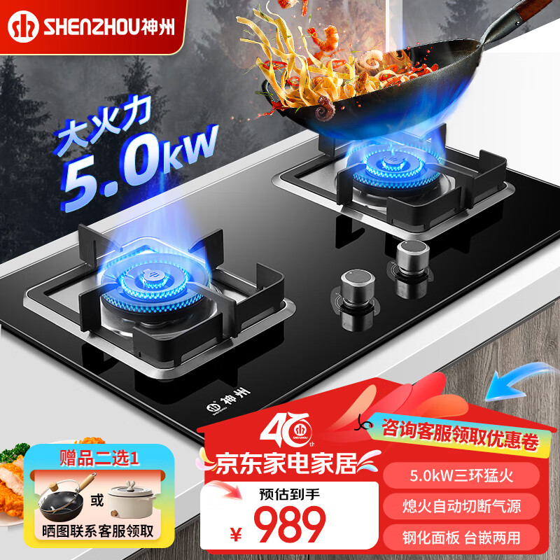 神州(SHENZHOU)【免费上门安装】神州(SHENZHOU)燃气灶煤气灶双灶天然气灶家用液化气嵌入式煤气炉台式猛火灶具 液化气 全国联保 上门服务