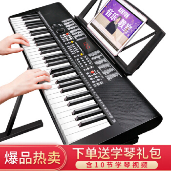 新韵 智能电子琴初学者成年人儿童幼师专用专业61键多功能家用教学琴 395黑色+大礼包