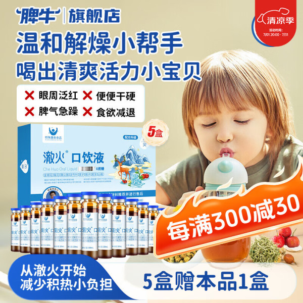 脾牛 澈火口饮液菊花晶清清宝儿童金银花下火饮液 澈火 200ml*5盒 澈火盒