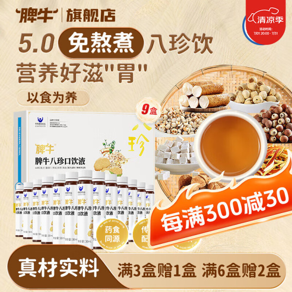 脾牛 八珍口饮液脾胃营养儿童成人山药茯苓芡实陈皮药食同源正品 240ml*9盒 组合装