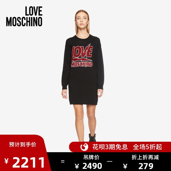 LOVE MOSCHINO/莫斯奇诺 20秋冬 女士闪电徽标羊毛连衣裙