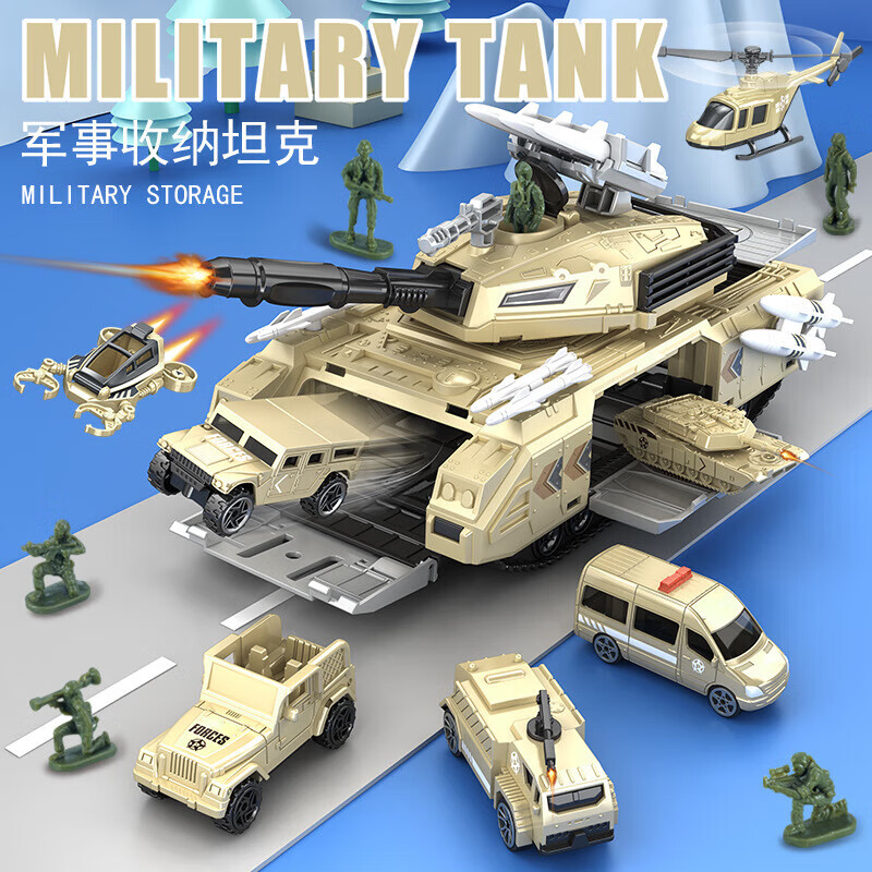 赟娅儿童大号坦克玩具汽车模型变形军事可发射炮弹导弹战车儿童节礼物 豪华款收纳坦克车 军事基地