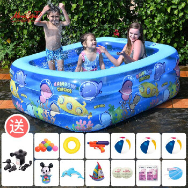 倍护婴 儿童游泳池长方形加厚超大充气婴儿游泳桶家用宝宝洗澡盆戏水池 加厚三环1.8米【180*140*60CM】