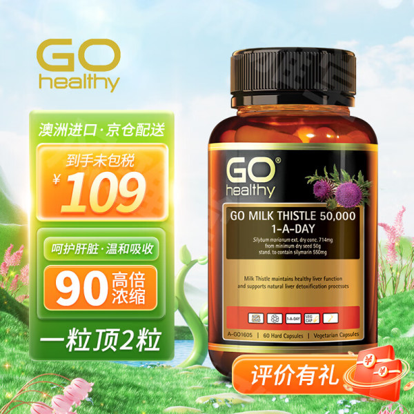 高之源(Go-Healthy)高之源护肝片90倍奶蓟草水飞蓟胶囊60粒 熬夜喝酒男女士养肝护肝 60粒*1瓶 【加班熬夜应酬常备 保税发货】