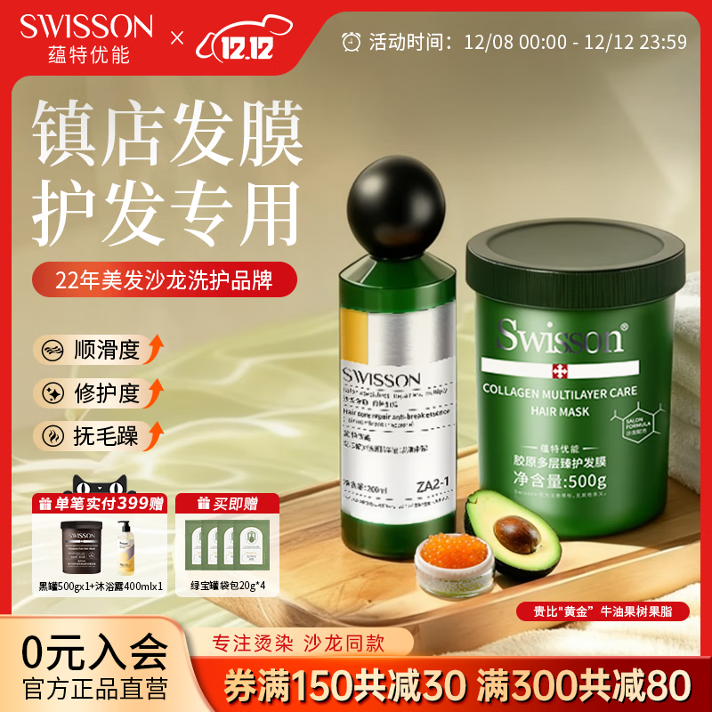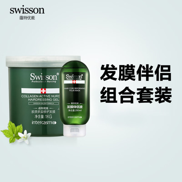 蕴特优能(SWISSON)发膜修干枯改善毛躁柔顺光泽蛋白复护发素矫顺滑焗油膏护发膜女士 发膜500g 发膜伴侣200ml