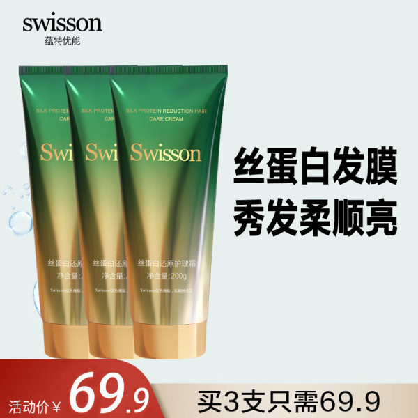 蕴特优能(SWISSON)丝蛋白护发素女干枯毛躁头发弹力素柔顺发膜200g 3支