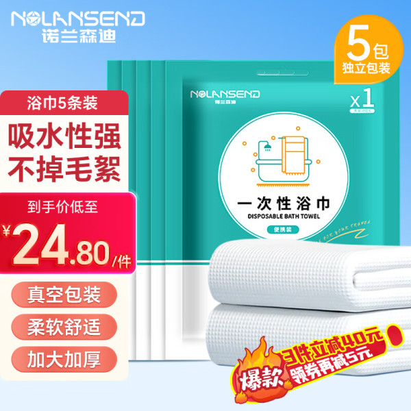 NOLANSEND 诺兰森迪 一次性浴巾加厚加大珍珠纹旅行出差酒店便携毛巾浴巾5包70*140cm
