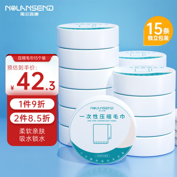 诺兰森迪压缩毛巾 加厚加大 便携旅行户外 一次性洗脸巾 独立包装*15粒 一次性浴室产品