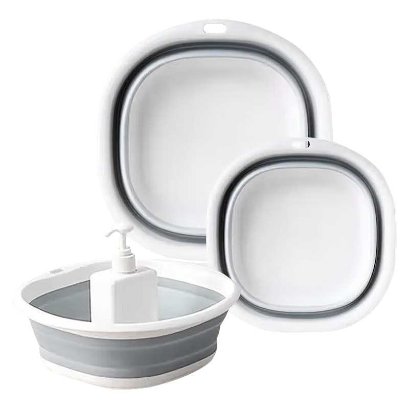 诺兰森迪 旅行折叠盆洗脸盆家用宿舍便携式军训必备用品水盆灰白色-中号