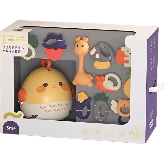 优乐恩摇铃套装牙胶3-12月新生婴儿礼物满月礼玩具萌萌鸡安抚礼盒 【萌萌鸡收纳盒 牙胶摇铃】礼盒