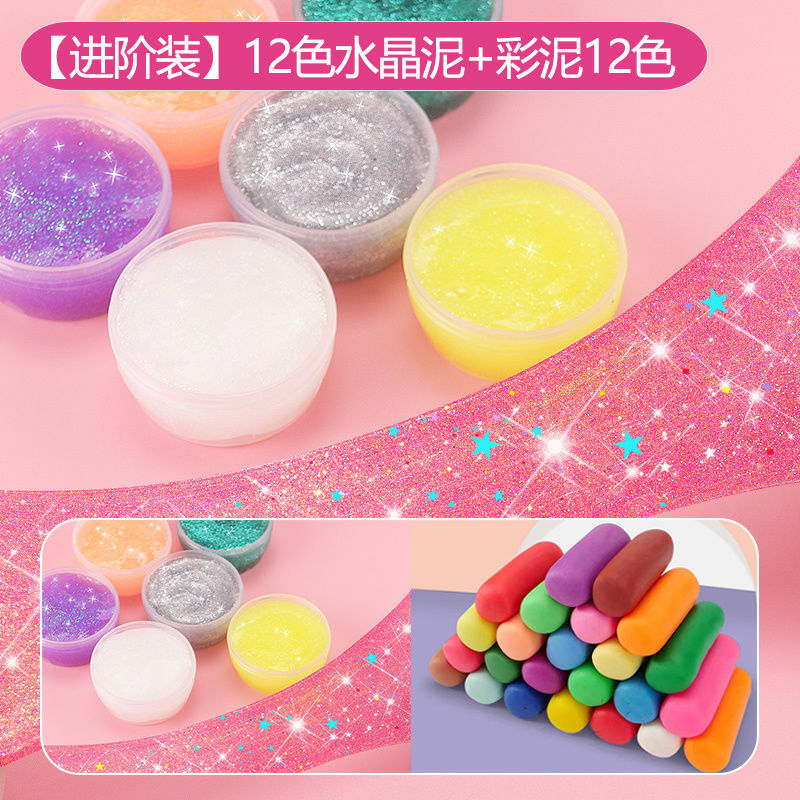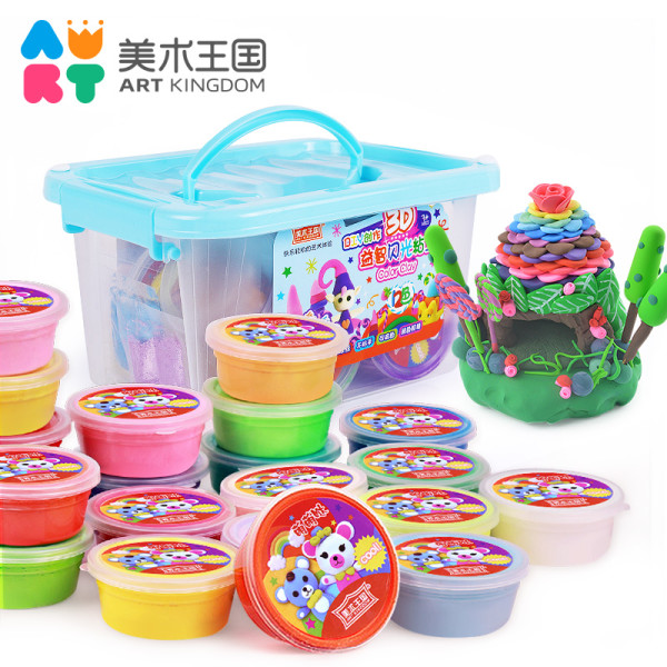 美术王国彩泥儿童水晶泥儿童彩泥橡皮泥玩具套装网红手工百变diy粘土 火山岩水晶泥12色 面粉彩泥12色