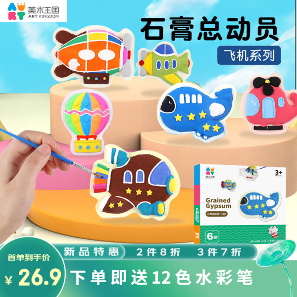 美术王国(Art Kingdom)石膏娃娃彩绘上色儿童手工DIY涂鸦男女孩生日礼物绘画套装礼盒 飞机套装AKD1323-3